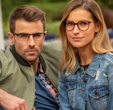 Gafas con aspecto sexy y juvenil que destacan por su diseño y sus originales acabados, para una mujer independiente y segura de sí misma, se alternan con las formas masculinas easy-to-wear reinterpretadas para el hombre contemporáneo.